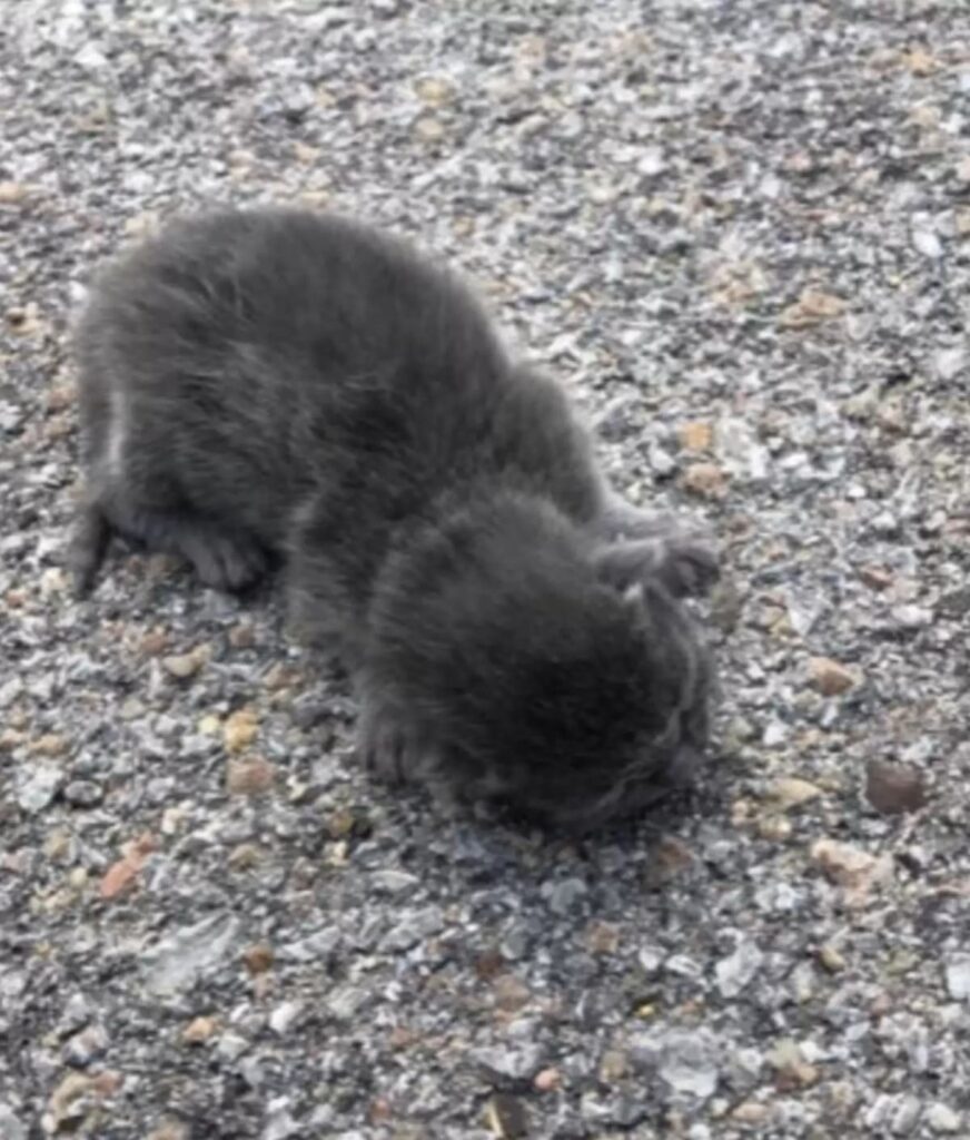 כשהאנטר הגיעה למשתלה, היא הבחינה במשהו מוזר בחניון. על המדרכה היה גוש קטן ומטושטש שנראה נטוש. "בהתחלה לא היה לי מושג מה אני רואה," סיפרה האנטר. "מרחוק זה נראה כמו עוד כתם שמן."