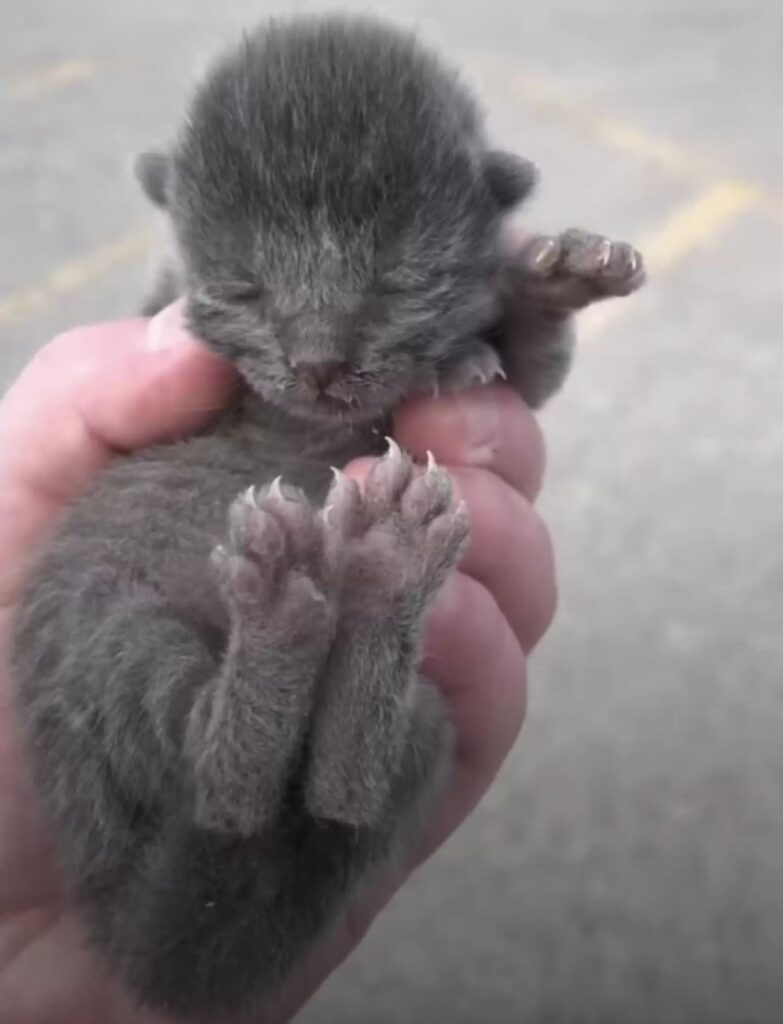 הסקרנות הובילה אותה לבדוק מקרוב, והיא גילתה שמדובר בגור קטן. בהתחלה חשבה שמדובר בארנב, לאחר מכן חשבה שזה אולי סנאי, אבל לבסוף הבינה שזהו חתלתול קטן, לא יותר מחמישה ימים.