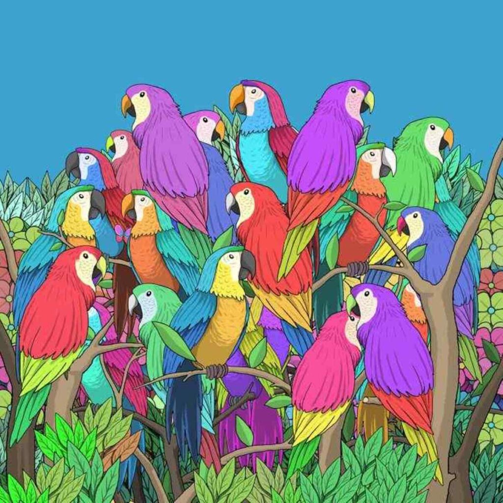 אשליה אופטית לבחינת IQ: האם תוכלו למצוא את הפרפר המוסתר בין התוכים?