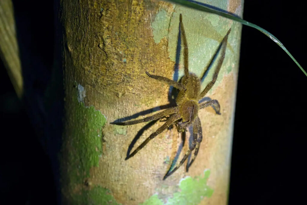 "אור הפנס פגע בקנבס של האוהל, וצללית של עכביש הופיעה," סיפר רוס. העכביש הזה היה עכביש נודד ברזילאי עם מוטת רגליים של יותר מ-7 אינצ'ים.