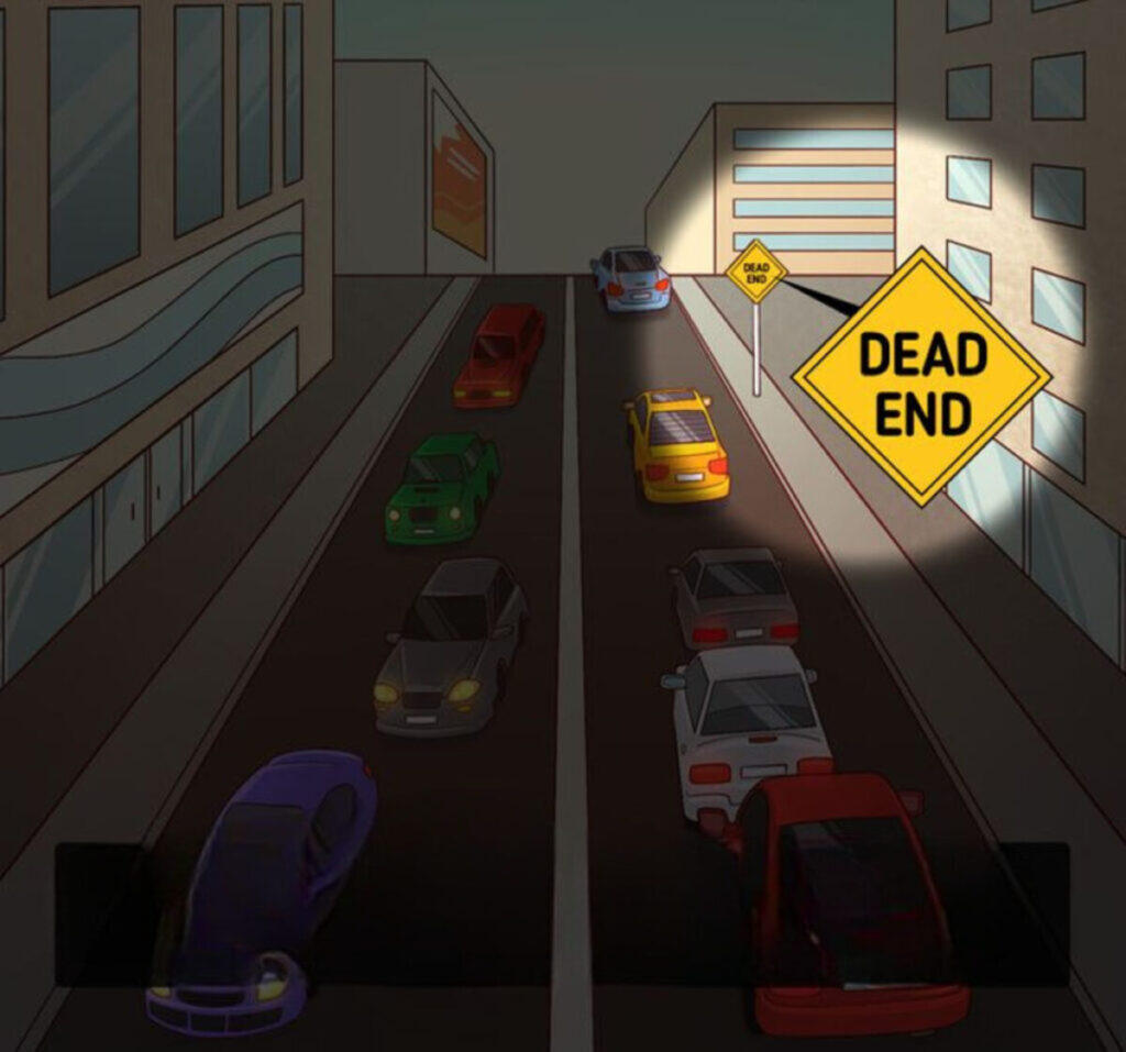 מילות מפתח: טעות מוסתרת, שלט סוף דרך, כביש דו-סטרי