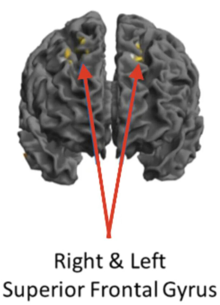 מבט קדמי של המוח. מוזיקאי הג'אז הראו פעילות מופחתת באזורי האונה הקדמית הללו כשהם במצב זרימה גבוהה. קרדיט: תמונה מסופקת על ידי ג'ון קווניוס, דוקטור, מאוניברסיטת דרקסל