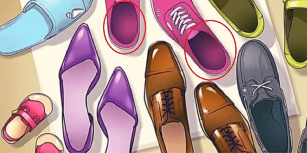 והפתרון הפשוט הוא… זוג הסניקרס הורודים שממוקם משמאל אינו משתלב עם יתר הנעליים.